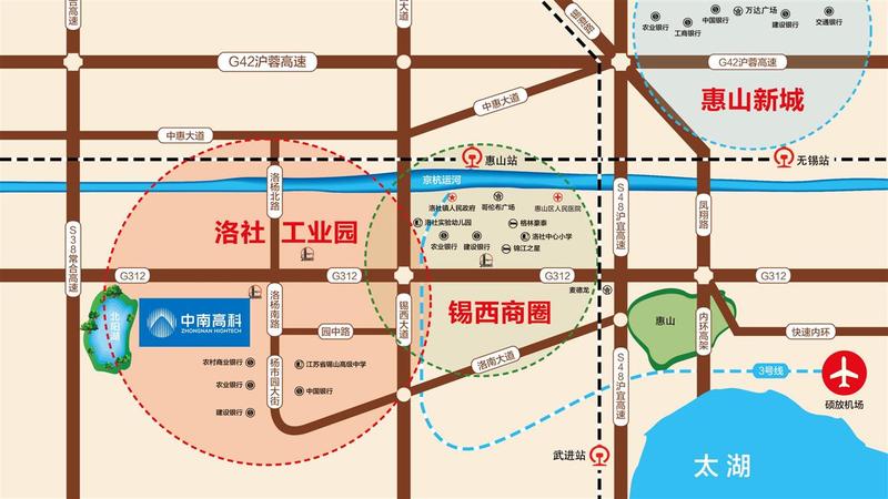 2、關(guān)于交通:旁邊就是312國道,運輸方便。6公里對接高速入口,距離惠山站(地鐵3號線) 6.7公里,距離無錫站18公里,地鐵3號線直達碩放機場。