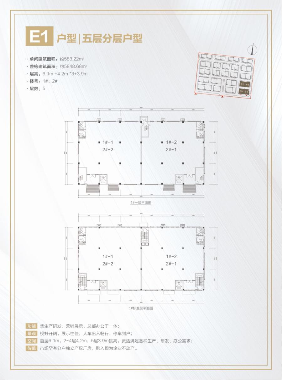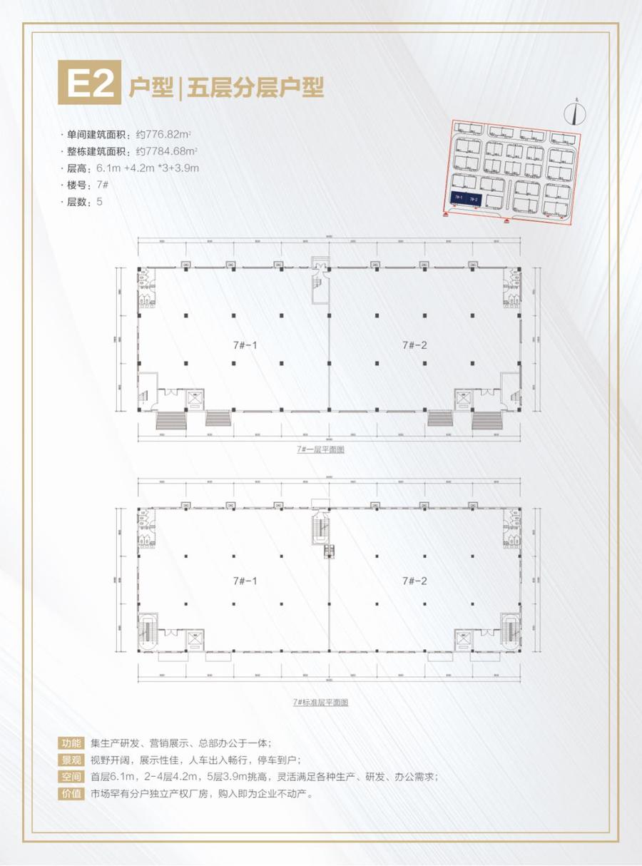B.五層大平層廠房,1200㎡/層,一層2戶,可分割,一戶一產(chǎn)權(quán),600平米,可分層招商。