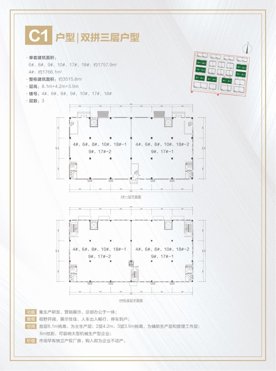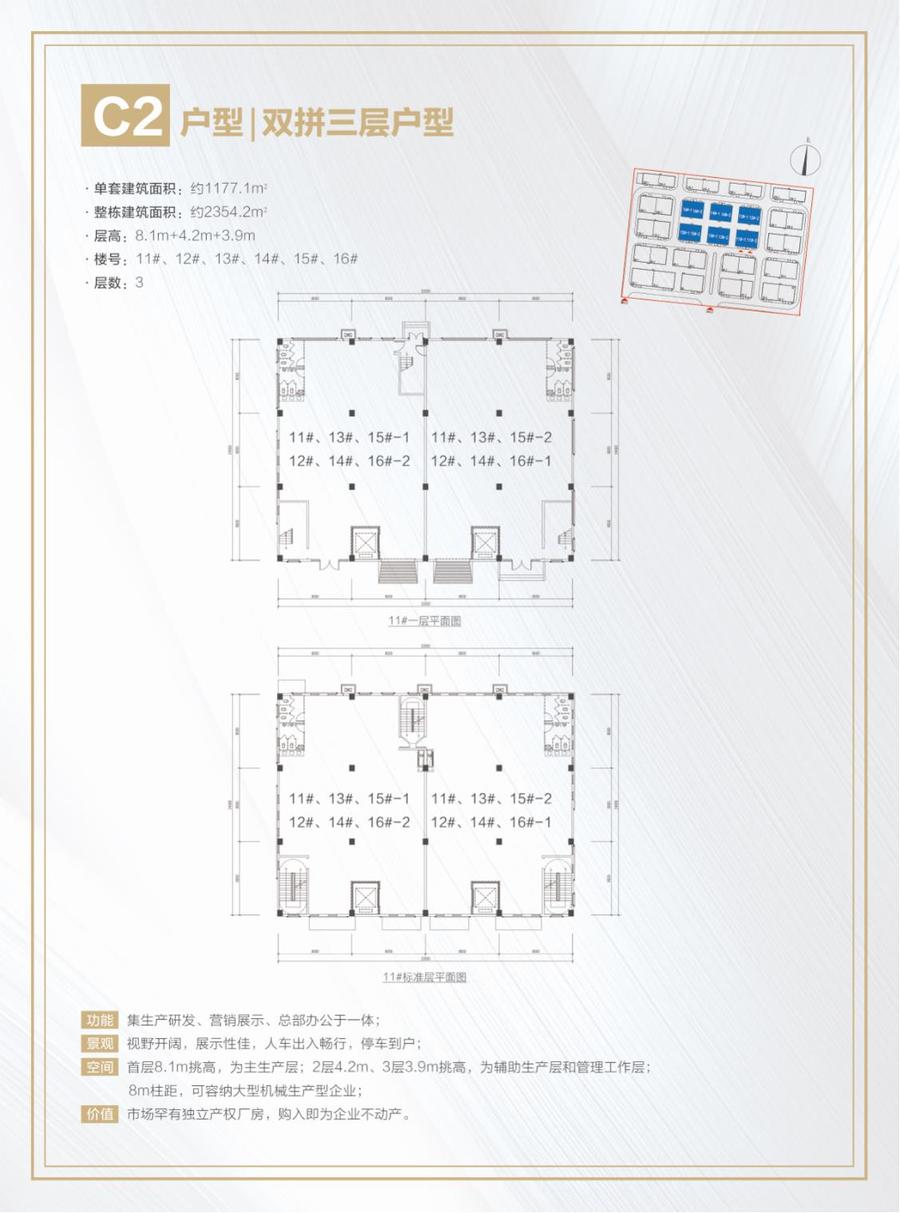 A.三層高標(biāo)準(zhǔn)廠房,面積1200㎡、1800㎡。