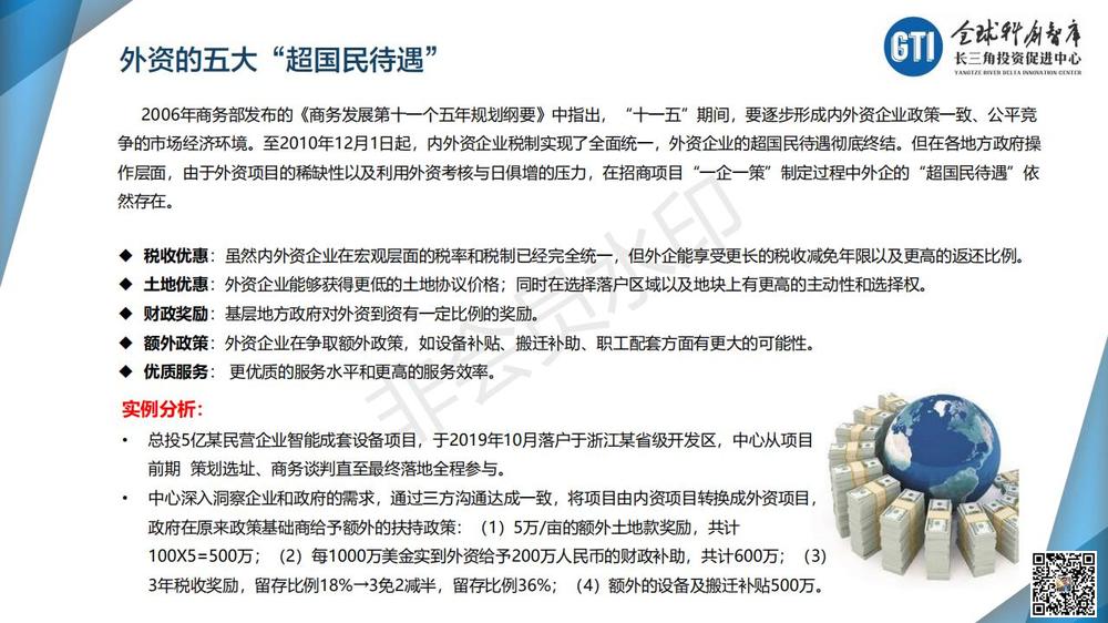 全球科創(chuàng)智庫長三角外資投資促進(jìn)服務(wù)(PPT) 外資企業(yè)投資長三角全程角決方案 內(nèi)資企業(yè)如何享受外資超國民待遇 外資企業(yè)財(cái)政扶持