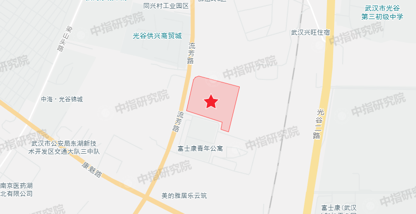本次出讓地塊編號P(2020)124號,土地位置東湖新技術(shù)開發(fā)區(qū)康魅路以北、光谷二路以西、流芳路以東、康力街以南。用地性質(zhì)為住宅用地,總用地面積27405.48㎡, 規(guī)劃建筑面積63032.6㎡,容積率≤2.3,出讓年限住宅70年,起始價(jià)54060萬元, 起始樓面價(jià)8576.51元/㎡。