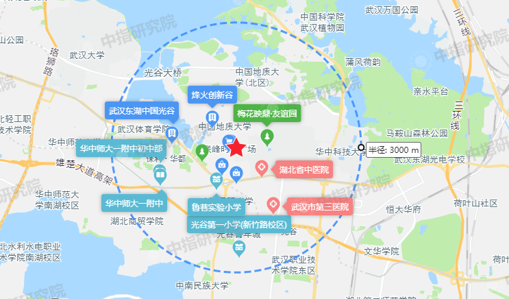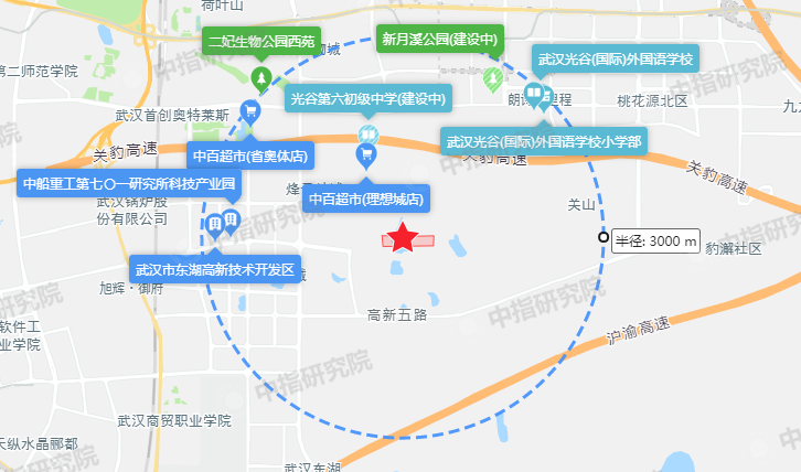 生活配套:周邊生活氛圍濃厚,教育、商業(yè)、醫(yī)療配套完善,地塊3km范圍內(nèi)聚集了省級示范性小學(xué)光谷頭部小學(xué)(新竹路校區(qū))、省級示范性中學(xué)華中師大一附中初中部、三甲醫(yī)院湖北省中醫(yī)院、購物中心光谷國際廣場等生活配套;