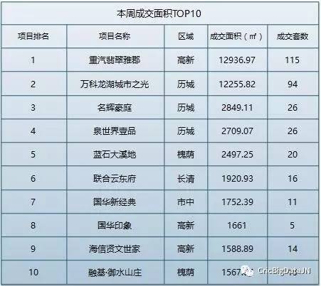 本周商品住宅排行:本周商品住宅簽約面積TOP10中,重汽翡翠雅郡、萬科龍湖城市之光分別位于榜單的頭部、第二名。