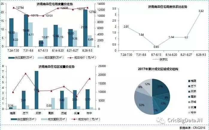 商品住宅供求:本周濟(jì)南商品住宅市場成交量價齊跌,供應(yīng)21.55萬㎡,環(huán)比上漲109.2%,主要供應(yīng)為海信九麓府、恒大綠洲等;成交量6.49萬㎡,環(huán)比下降30.7%,成交項(xiàng)目有重汽翡翠雅郡、萬科龍湖城市之光等;本周天橋區(qū)為主力供應(yīng)區(qū)域。