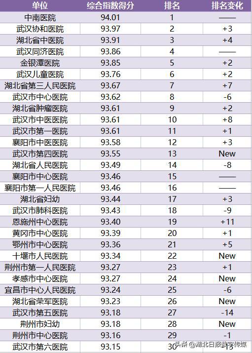6月18日,由荊楚網(wǎng)(湖北日?qǐng)?bào)網(wǎng))、楚天輿情數(shù)據(jù)研究院制作的湖北醫(yī)院傳播指數(shù)5月榜(總第15期)發(fā)布。本期,前三甲變動(dòng)較大,武漢金銀潭醫(yī)院首次跌出榜單前三甲,中南醫(yī)院繼續(xù)蟬聯(lián)冠軍寶座,武漢協(xié)和醫(yī)院和湖北省中醫(yī)院分別取代武漢市中心醫(yī)院、武漢金銀潭醫(yī)院位列第二、三名。