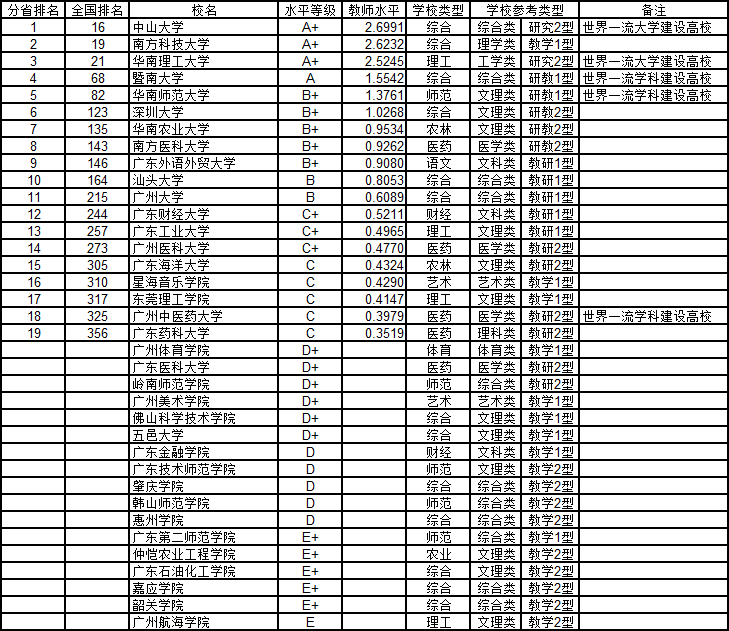 廣東省面積18萬平方公里,人口10849萬人,人均GDP:67115元。2018年共評(píng)價(jià)36所普通本科大學(xué)。教師47822人,在校博士生13533人,碩士生69326人,普通本科生639478人。