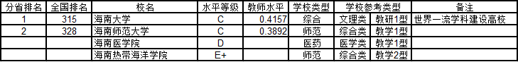 海南省面積3.4萬平方公里,人口911萬人,人均GDP:40653元。2018年共評(píng)價(jià)4所普通本科大學(xué)。教師3949人,在校博士生177人,碩士生3721人,普通本科生66608人。