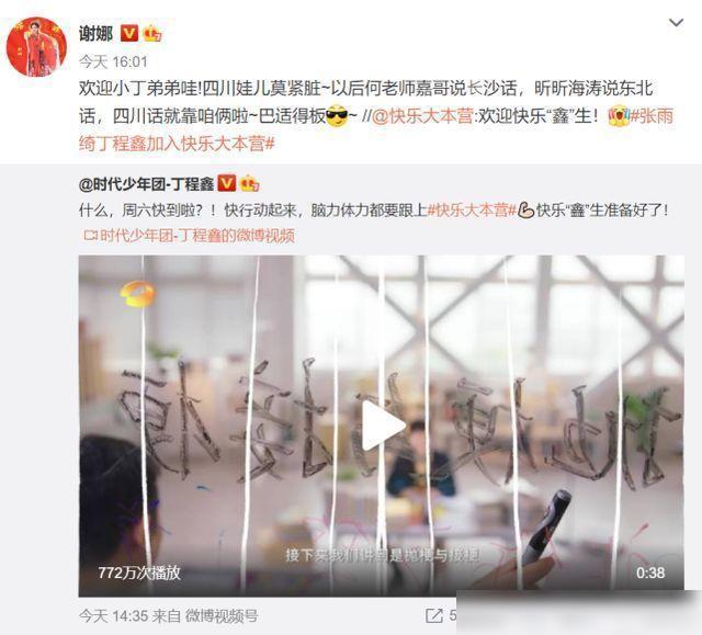 和張雨綺一起正式宣布加入代理快本的丁程鑫、謝娜也熱烈歡迎新浪微博,張雨綺和丁程鑫是長期簽約的主持人,快本節(jié)目的主持人總數(shù)也增加了2人。Shina還在推特上說:四川省的孩子不要弄臟~之后,幾噸嘉哥說了東北話,昕洪濤說了四川話,兩人都說了~巴適板。