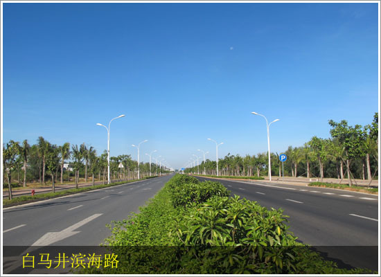 白馬井距??谑屑s130公里、三亞市約250公里??⒐ねㄜ嚨?5米寬的濱海景觀大道以及40米寬的中心大道(含景觀帶),連接西線小時(shí),那大城區(qū)半個(gè)小時(shí)。