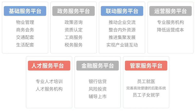 項目由中南高科開發(fā),后期企業(yè)進駐之后,物業(yè)管理也是由中南高科提供一站式管家服務(wù)體系,為企業(yè)提供長期穩(wěn)定的發(fā)展環(huán)境和政策支持,加速培育區(qū)域整體的產(chǎn)業(yè)生態(tài)環(huán)境。中南高科后期運營服務(wù)包含了七大運營服務(wù)平臺,保證入園企業(yè)無憂。