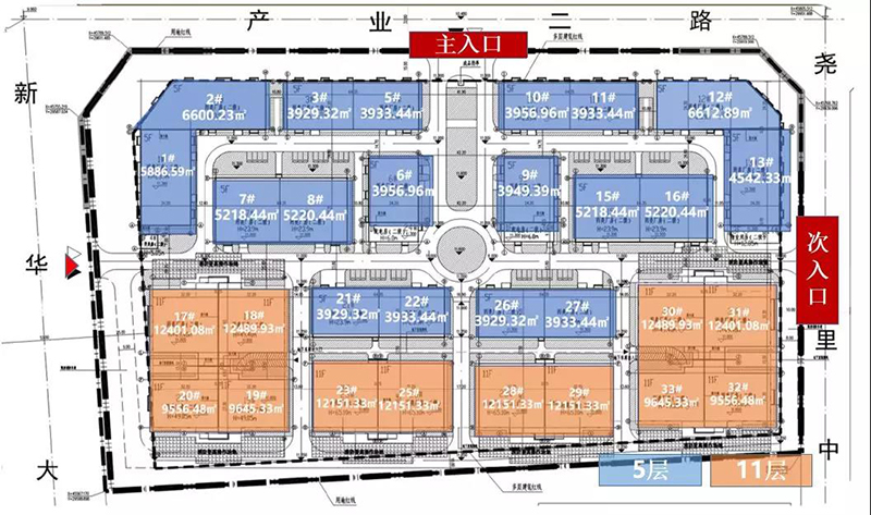項目一期總共有34棟單體建筑,包括4棟配套用房(4#、14#、24#、34#)與30棟框架廠房。