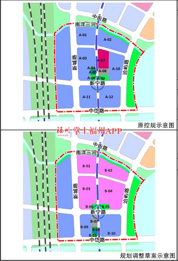 調(diào)整后,規(guī)整原新寧路北側(cè)地塊新型工業(yè)用地、環(huán)衛(wèi)用地、公共交通場站用地及防護綠地,調(diào)整為高等院校用地(即福州外語外貿(mào)學院濱海新城校區(qū)),用地面積為134114平方米(合201畝)。