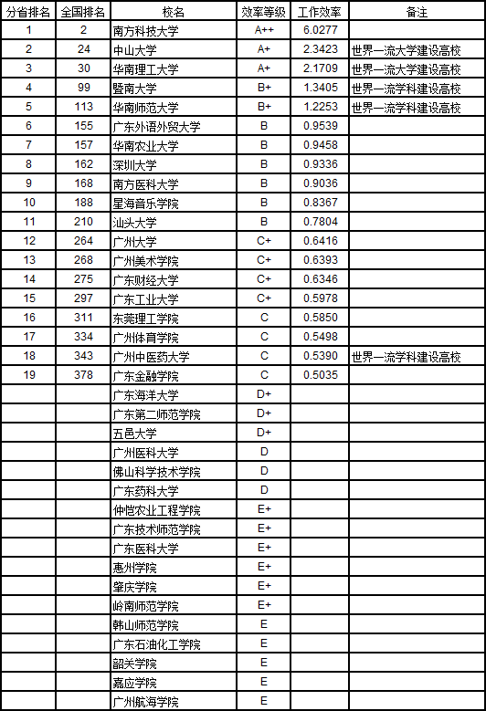 教師工作效率(績效)是大學(xué)各項(xiàng)辦學(xué)指標(biāo)中蕞重要的指標(biāo)之一。2018年,在這項(xiàng)指標(biāo)的競爭中,有15所大學(xué)獲得A++級(jí)的蕞高等級(jí)。上??萍即髮W(xué)以8.0031分獲第1名,南方科技大學(xué)以6.0277分得第2名,中國科學(xué)技術(shù)大學(xué)以4.3473分列第3名。