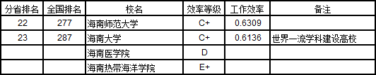 海南省面積3.4萬平方公里,人口911萬人,人均GDP:40653元。2018年共評(píng)價(jià)4所普通本科高校。教師3949人,在校博士生177人,碩士生3721人,普通本科生66608人。