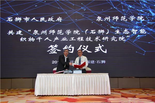 泉州師范學(xué)院簽訂共建“泉州師范學(xué)院(石獅)生態(tài)智能織物千人產(chǎn)業(yè)工程技術(shù)研究院”項(xiàng)目合約。 石獅紡織服裝產(chǎn)業(yè)聯(lián)盟和法國(guó)設(shè)計(jì)師協(xié)會(huì)達(dá)成戰(zhàn)略合作伙伴關(guān)系。