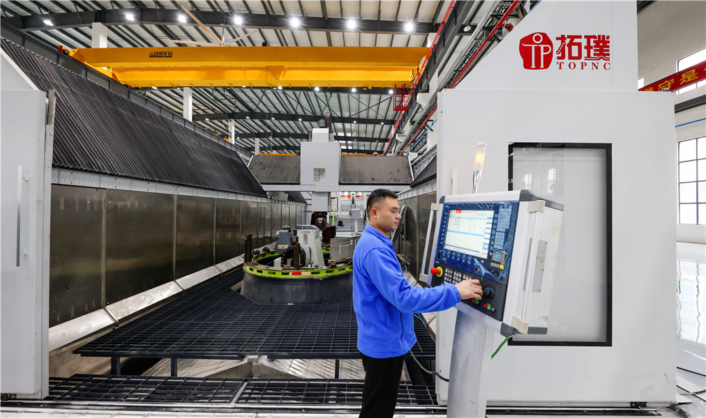2021年1月下旬,在眾拓航空航天科技(江蘇)有限責(zé)任公司一期投資2.3億元建設(shè)的五軸加工中心項目現(xiàn)場,一臺采用機(jī)銑工藝的大型飛機(jī)蒙皮雙五軸鏡像銑設(shè)備正在高效率運轉(zhuǎn)。廠區(qū)另一側(cè),技術(shù)人員正在對剛產(chǎn)出的航天設(shè)備外殼壁板樣件進(jìn)行檢測。依靠高端設(shè)備和先進(jìn)技術(shù),該公司產(chǎn)品主要應(yīng)用于國家尖端航空航天器,并為中外知名航空航天供應(yīng)商提供產(chǎn)品與技術(shù)支持。
