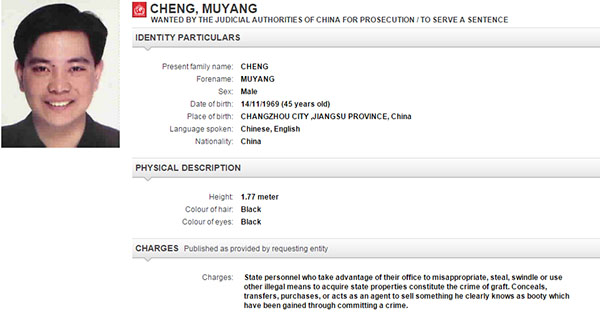 2015年4月,“天網(wǎng)行動”全面啟動,國際刑警組織中國國家中心局針對100名外逃腐敗分子發(fā)布紅色通緝令,程慕陽赫然在列,涉嫌罪名為貪污、窩藏轉移贓物。