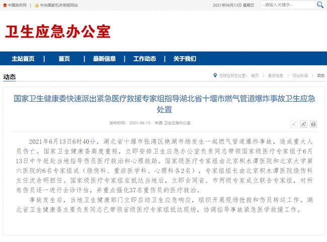 湖北十堰燃?xì)獗ㄊ鹿使彩罩蝹T138人其中37人重傷