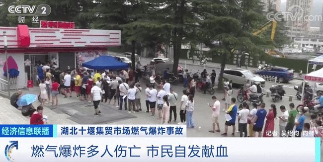 爆炸事故發(fā)生后,湖北十堰市民自發(fā)報(bào)名獻(xiàn)血,在一些獻(xiàn)血點(diǎn),獻(xiàn)血市民排起了長(zhǎng)隊(duì)。