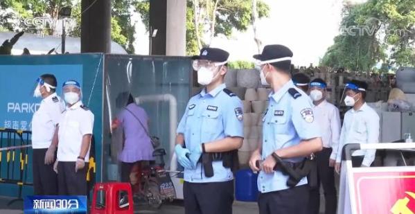 總臺記者 魏星:現(xiàn)在是6月3日的下午,我所在的位置是荔灣區(qū)中南街道海南社區(qū),這里在6月1日列列為高風險區(qū)域,現(xiàn)在整個地方已經實行了封閉式管理,所有現(xiàn)場的人員只進不出。在社區(qū)的外圍,設置了一個這樣的執(zhí)勤崗點。我們看到,所有的車輛要進去先要經過消殺,在現(xiàn)場還有安保人員、醫(yī)務人員等維持秩序。在里面我們看到,所有的店鋪已經關閉,在每一個路口都設有安保人員維持秩序。