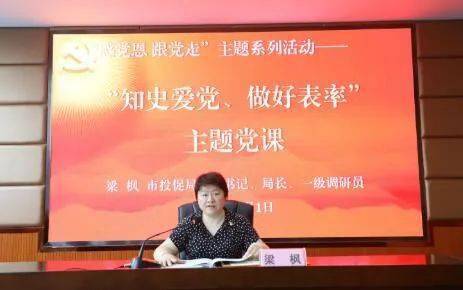 今年4月,時(shí)任南寧市投資促進(jìn)局黨組書記梁楓給該局黨員干部上主題黨課。來(lái)源:南寧市投促局網(wǎng)站