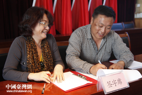 在16上午的座談會(huì)上,五家渠農(nóng)六師101團(tuán)1連與3連分別與臺(tái)灣鄉(xiāng)鎮(zhèn)里長(zhǎng)交流團(tuán)代表簽署了一份兩地友好合作意向書(shū)。意向書(shū)旨在促進(jìn)兩地深入交流互訪與深入合作,得到了兩地同胞的大力支持。