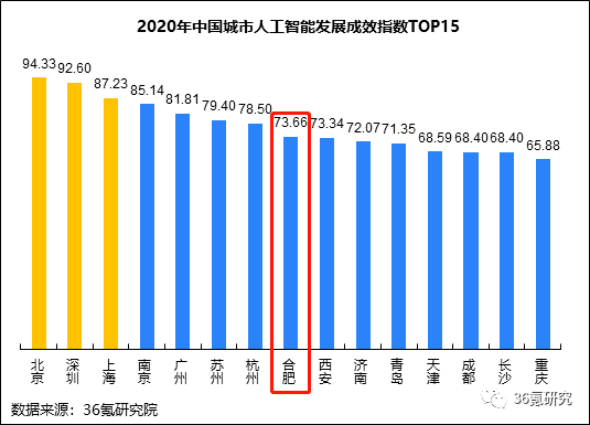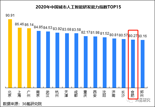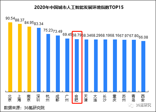 近日,36氪研究院發(fā)布《2020年中國(guó)城市人工智能發(fā)展指數(shù)報(bào)告》,中國(guó)城市人工智能發(fā)展總指數(shù)得分前10的城市為我國(guó)人工智能發(fā)展頭部梯隊(duì)。合肥市全國(guó)排名第8位,躋身頭部梯隊(duì)。