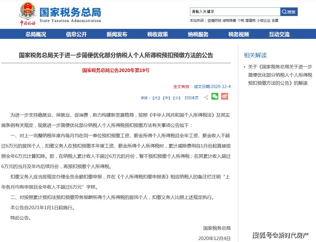 。《公告》顯示,2021年1月1日起,對上一完整納稅年度內(nèi)每月均在同一單位預(yù)扣預(yù)繳工資、薪金所得個人所得稅,且全年工資、薪金收入不超過6萬元的居民個人,扣繳義務(wù)人在預(yù)扣預(yù)繳本年度工資、薪金所得個人所得稅時,累計減除費用自1月份起直接按照全年6萬元計算扣除。這意味著,納稅人在累計收入不超過6萬元的月份,暫不預(yù)扣預(yù)繳個人所得稅。