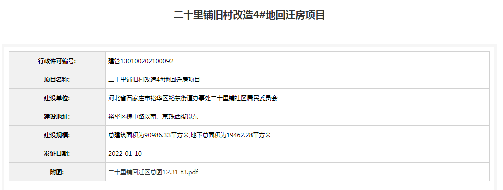 二十里鋪舊村改造4#地回遷房項目建設(shè)單位為石家莊市裕華區(qū)裕東街道辦事處二十里鋪社區(qū)居民委員會,建設(shè)地址裕華區(qū)槐中路以南、京珠西街以東,總建筑面積為90986.33平方米。