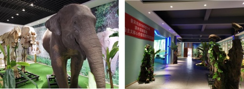在此基礎(chǔ)上,學(xué)校還積極探索與科研單位的合作路徑,與普洱市林草局合作,開展一系列活動(dòng)。2018年,在普洱市林草局的大力支持下,工作室引進(jìn)資金投入 25萬元,建成了生物多樣性館,把大象“請(qǐng)”進(jìn)了學(xué)校。展館分為A、B兩個(gè)區(qū)域,除了普洱市林草局的提供動(dòng)物標(biāo)本 43件,館內(nèi)還有學(xué)生自制的一些標(biāo)本。