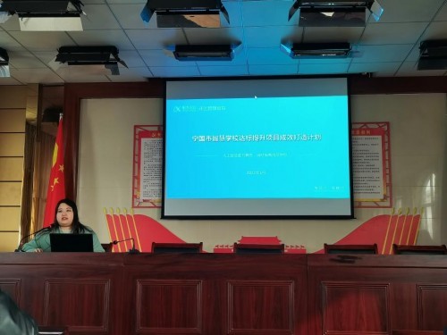 科大訊飛項目經理陳懷貞圍繞著建設背景、項目內容、建設目標對寧國市智慧學校建設項目的整體情況進行介紹,并從建設清單、實施計劃、組織管理等方面對項目的具體建設內容進行了解讀。