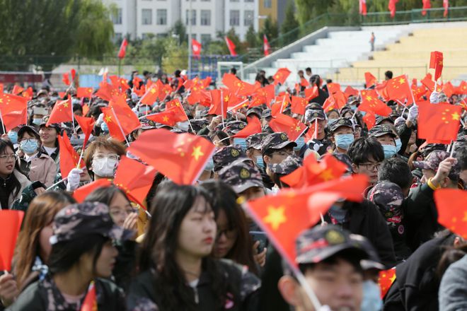 典禮伊始,伴隨著雄壯的國(guó)歌,鮮艷的五星紅旗在體育場(chǎng)上空冉冉升起。2021級(jí)新生開學(xué)典禮隆重開幕。