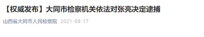 日前,大同市人民檢察院依法以涉嫌受賄罪、貪污罪、國(guó)有公司人員失職罪對(duì)張亮作出逮捕決定。案件正在進(jìn)一步辦理中。