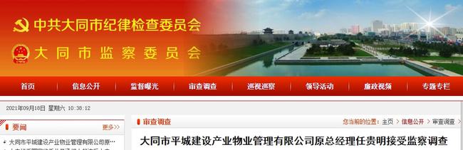 9月17日,大同市紀(jì)委監(jiān)委通報(bào):大同市平城建設(shè)產(chǎn)業(yè)物業(yè)管理有限公司原總經(jīng)理任貴明涉嫌嚴(yán)重違紀(jì)違法,經(jīng)大同市監(jiān)委指定,目前正接受左云縣監(jiān)委監(jiān)察調(diào)查。
