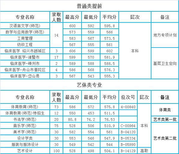 紹興文理學(xué)院2021年浙江省各專業(yè)錄取分?jǐn)?shù)和位次情況