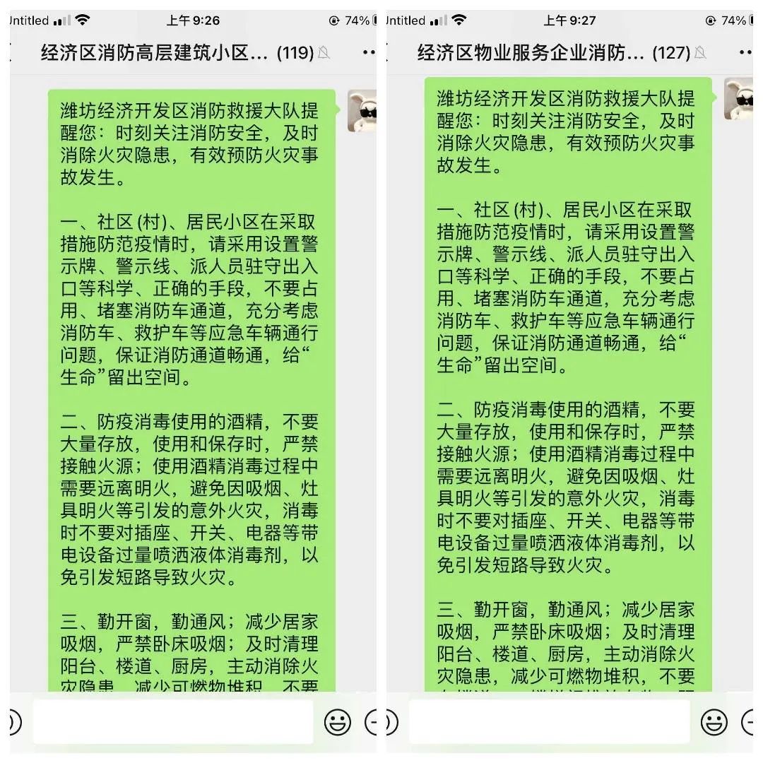 △依托重點單位微信群,向轄區(qū)消防安全重點單位負責人推送消防安全警示提示,提醒單位注意安全用火用電,主動學習防火安全、易燃物儲備等消防安全知識確保疫情期間轄區(qū)消防安全形勢持續(xù)穩(wěn)定。