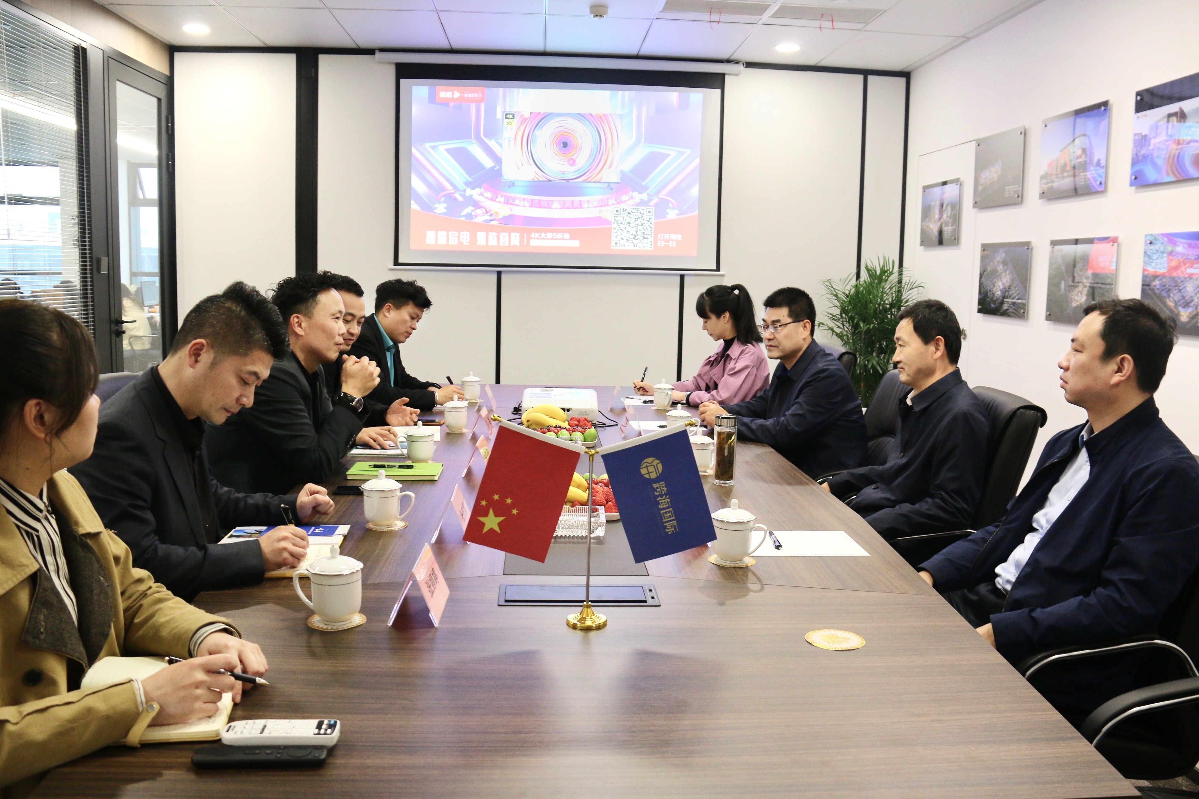 4月13日,陜西省寶雞市金臺區(qū)區(qū)委書記寧懷彬攜招商局、管委會等領(lǐng)導(dǎo)一行,蒞臨浙江跨??毓杉瘓F(tuán)杭州總部...