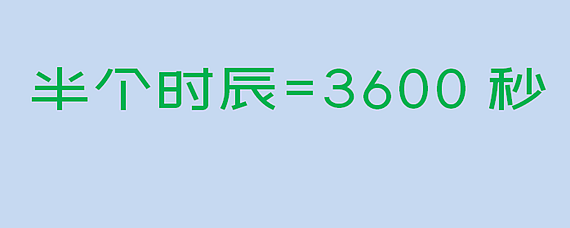 半個時辰有3600秒,半個時辰就是一個鐘頭60分,每分鐘是60秒,所以半個時辰等于60分鐘乘以60秒,即等于3600秒。時辰是古代計時單位。國傳統(tǒng)計時單位。把一晝夜平分為十二...