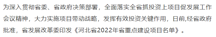 河北省2022年省重點建設(shè)項目名單