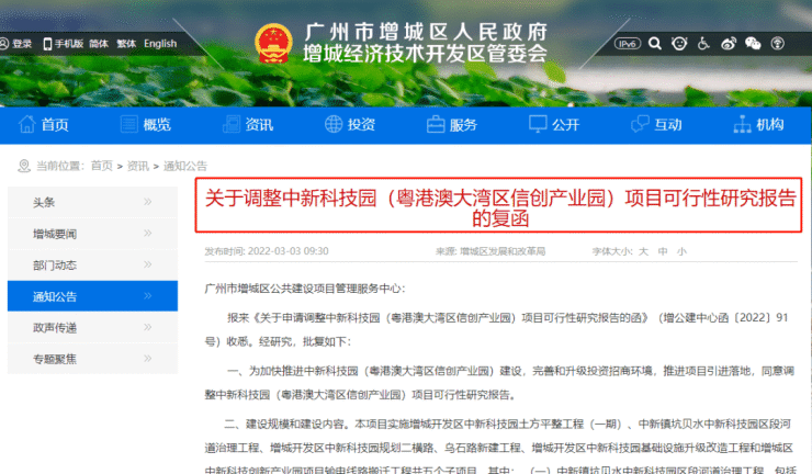 值得一提的是,在今年的3月份,中新科技園(粵港澳大灣區(qū)信創(chuàng)產(chǎn)業(yè)園)項目可行性研究報告已經(jīng)出爐。
