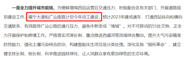 另外,福寧大道、廣汕南路也計劃今年動工建設(shè),并預(yù)計明年建成通車。(信息來源:2022年中新鎮(zhèn)政府工作報告)